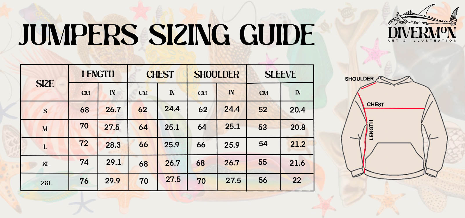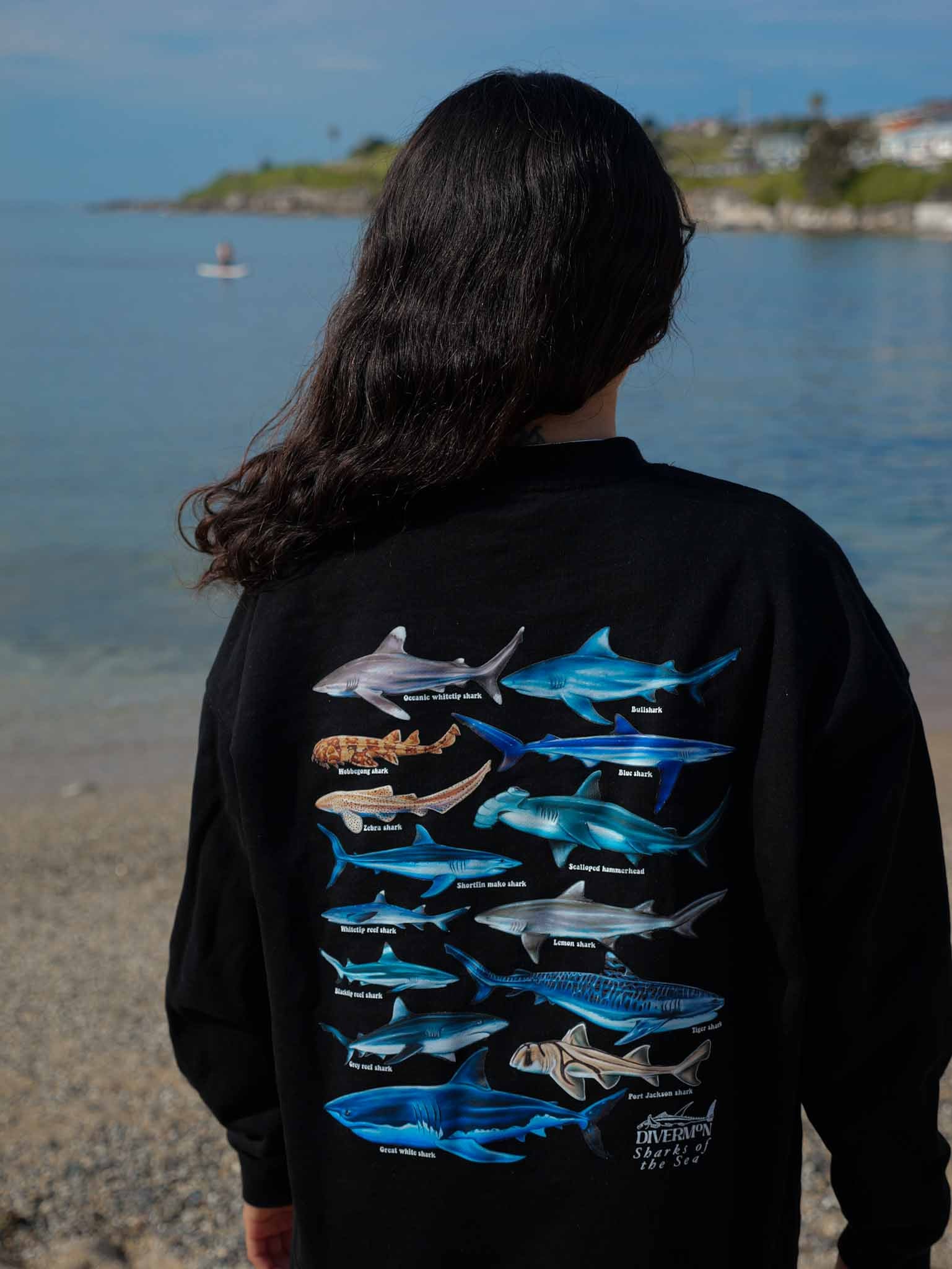 "Sharks of the sea" is a premium heavy weight jumper that feels like a warm hug, with that perfect, fuzzy lining on the inside that we all adore. Trust me, you won't want to take it off once you put it on! Featuring an array of sharks from around the world on the back and an embroidered logo on the front! So, are you ready to level up your comfort game with this beautiful “Sharks of the sea” hoodie?