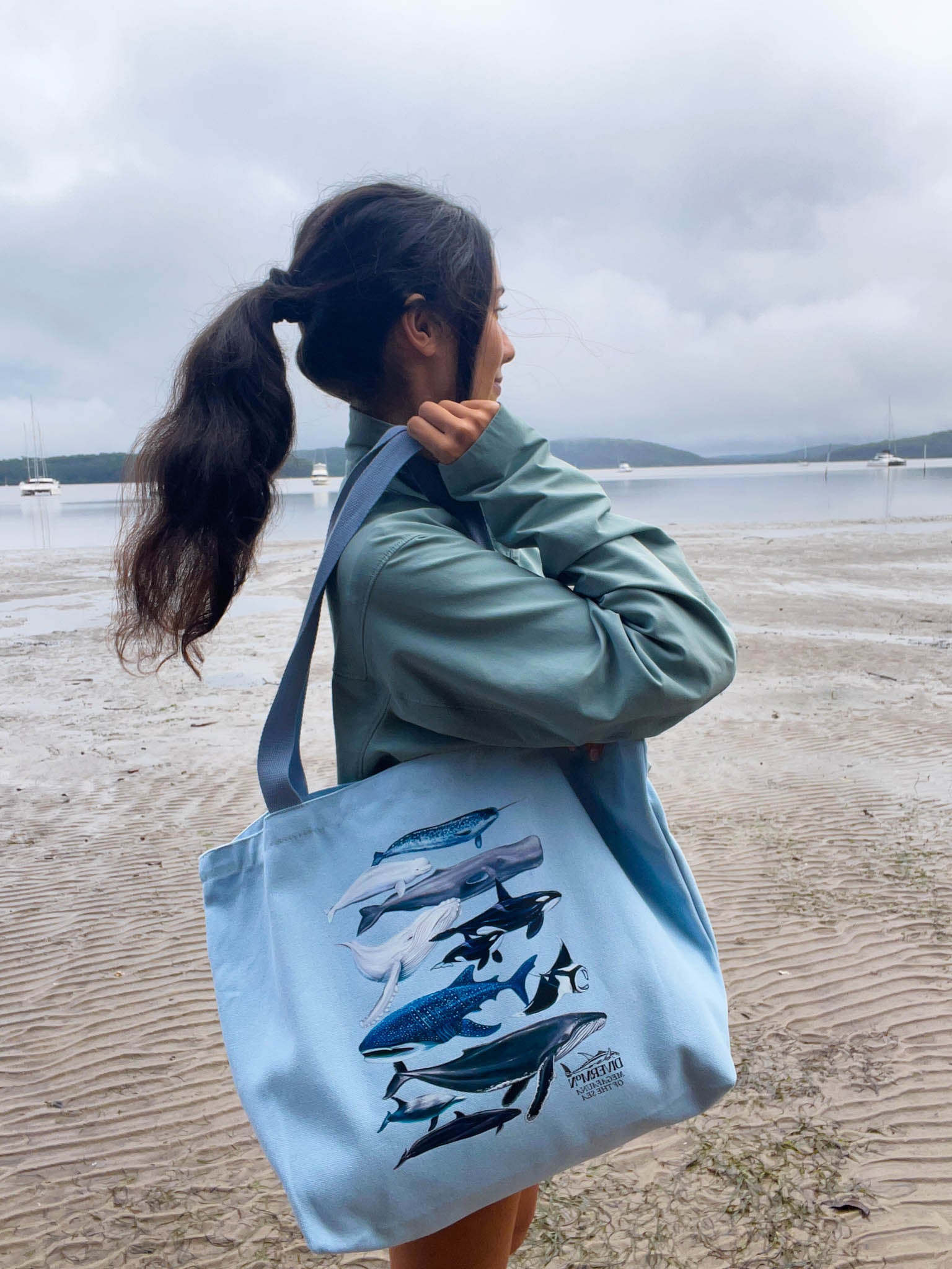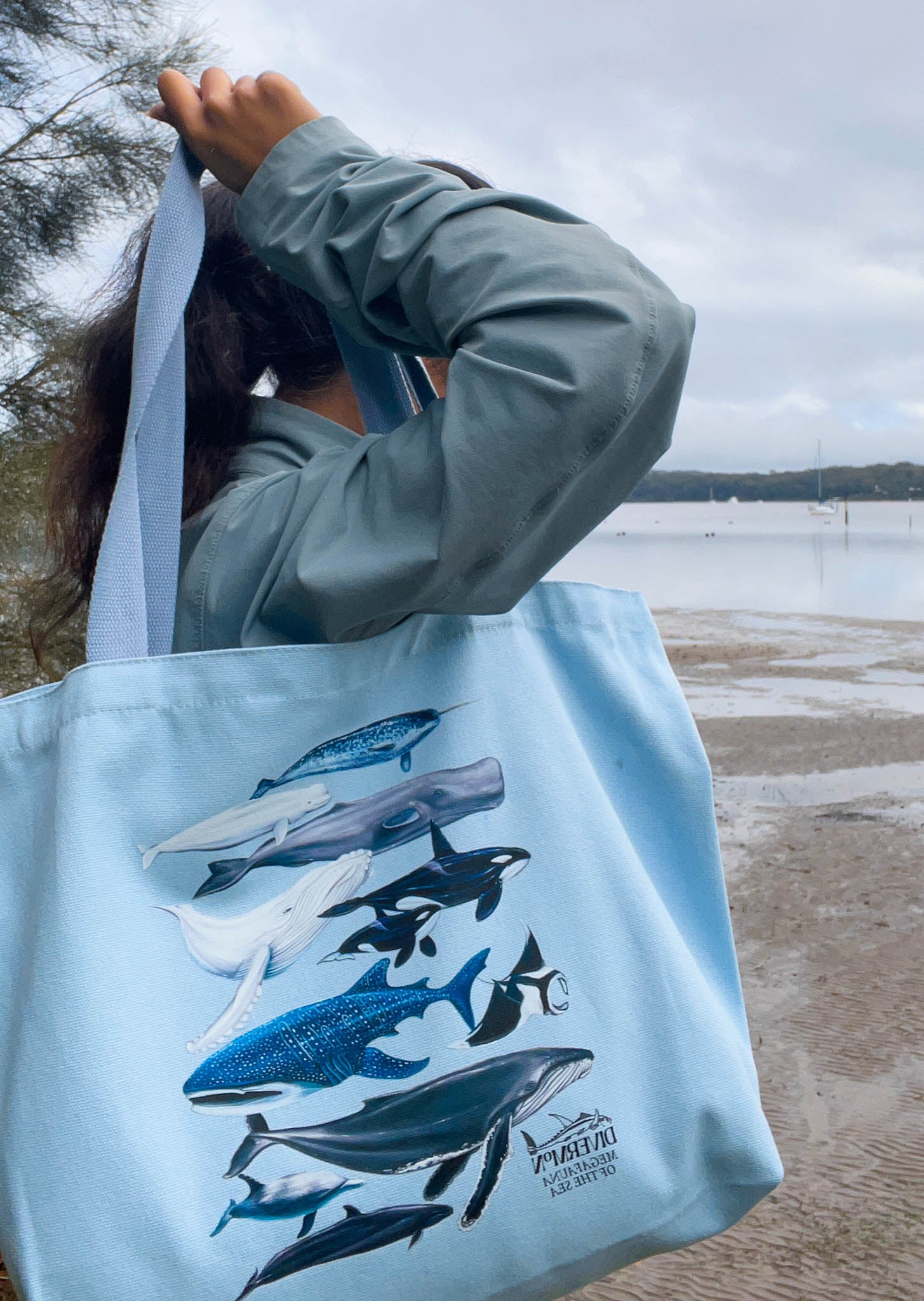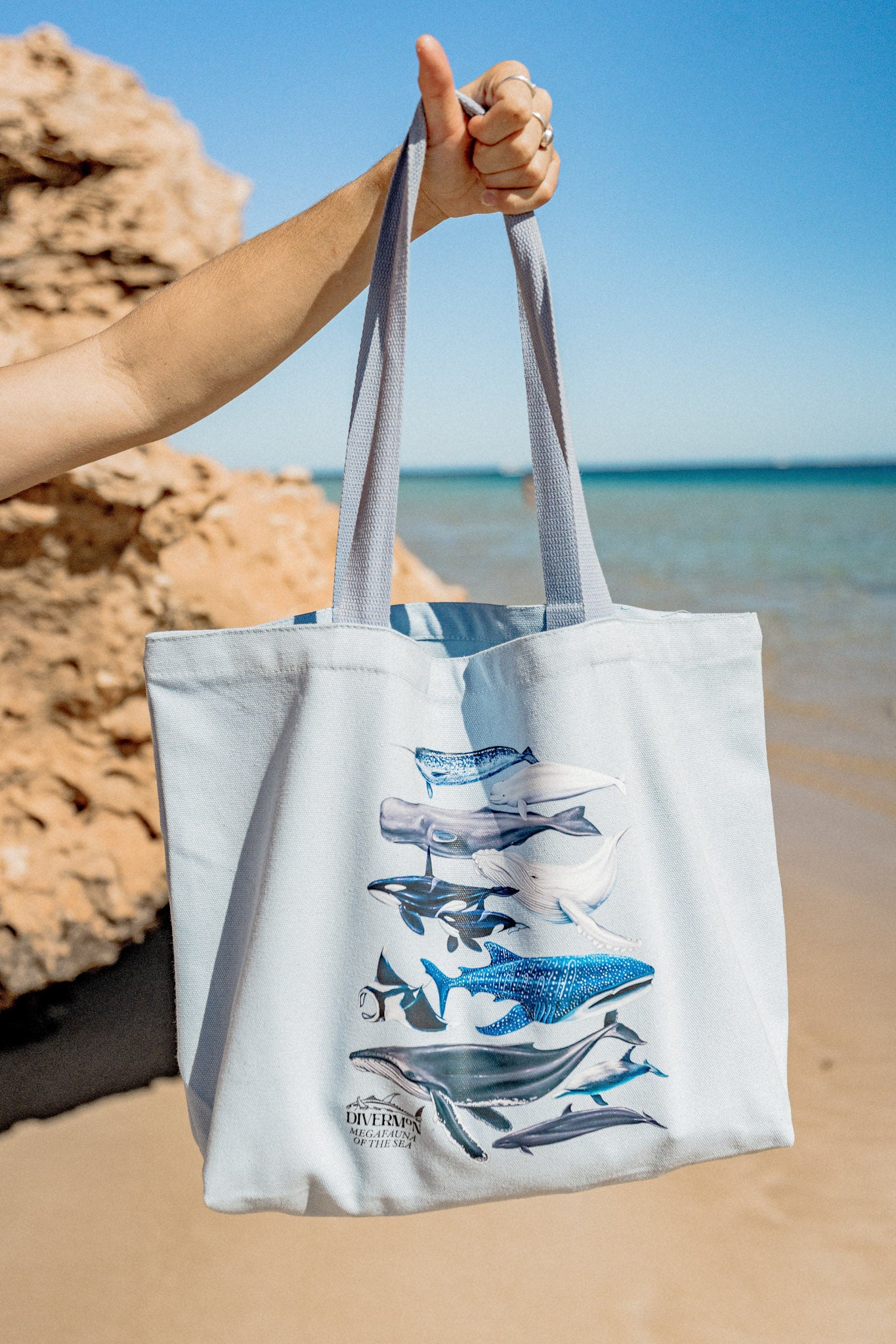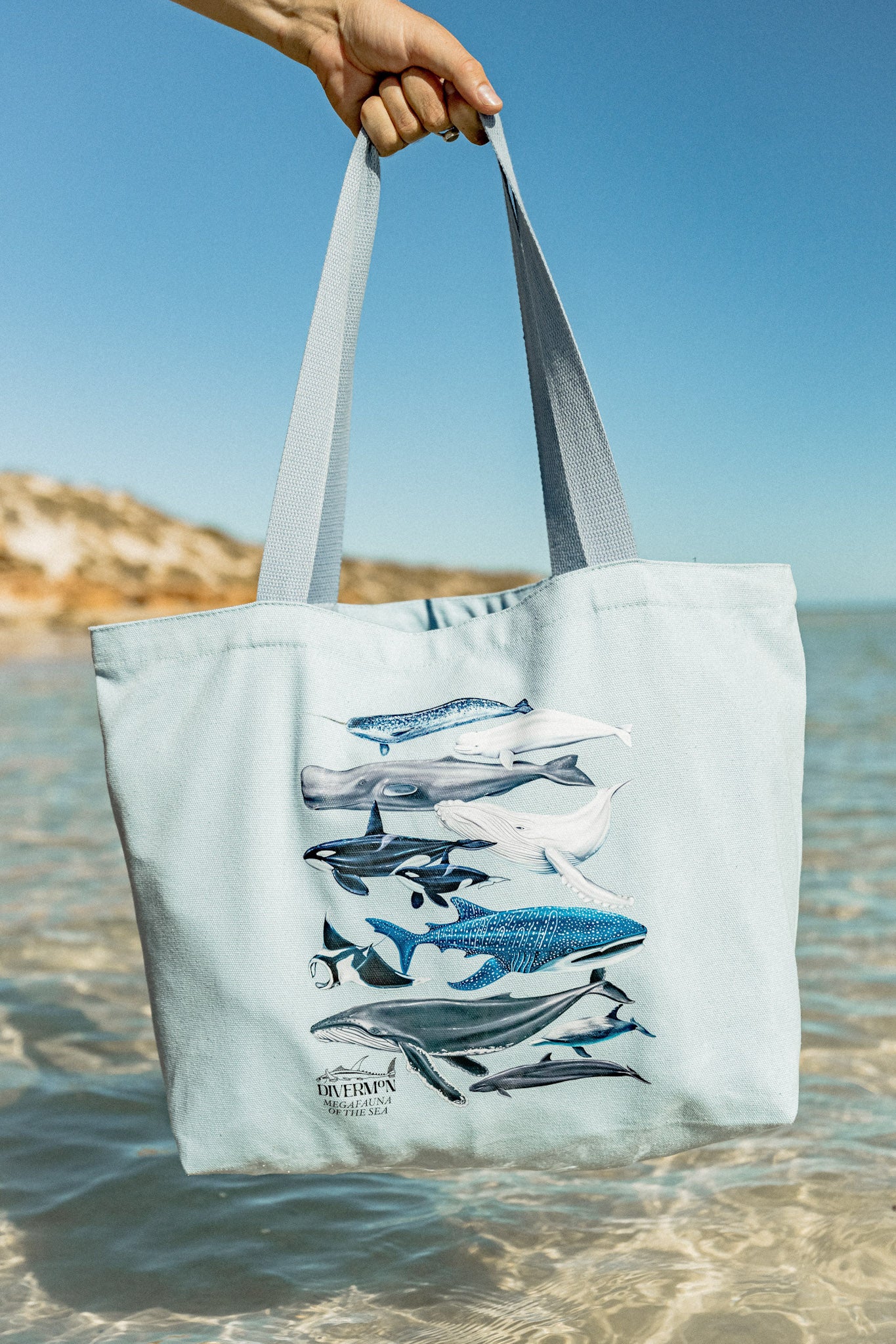 The "Megafauna" XL Tote Bag is a true statement piece for marine lovers, designed by Mon with care and hours of detailed illustration work. This oversized cotton canvas tote features some of the ocean’s most iconic giants: whale shark, manta ray, humpback whale, narwhal, sperm whale, orca, beluga, pilot whale, and a dolphin, all hand-drawn in a one-of-a-kind, exclusive design you won’t find anywhere else.