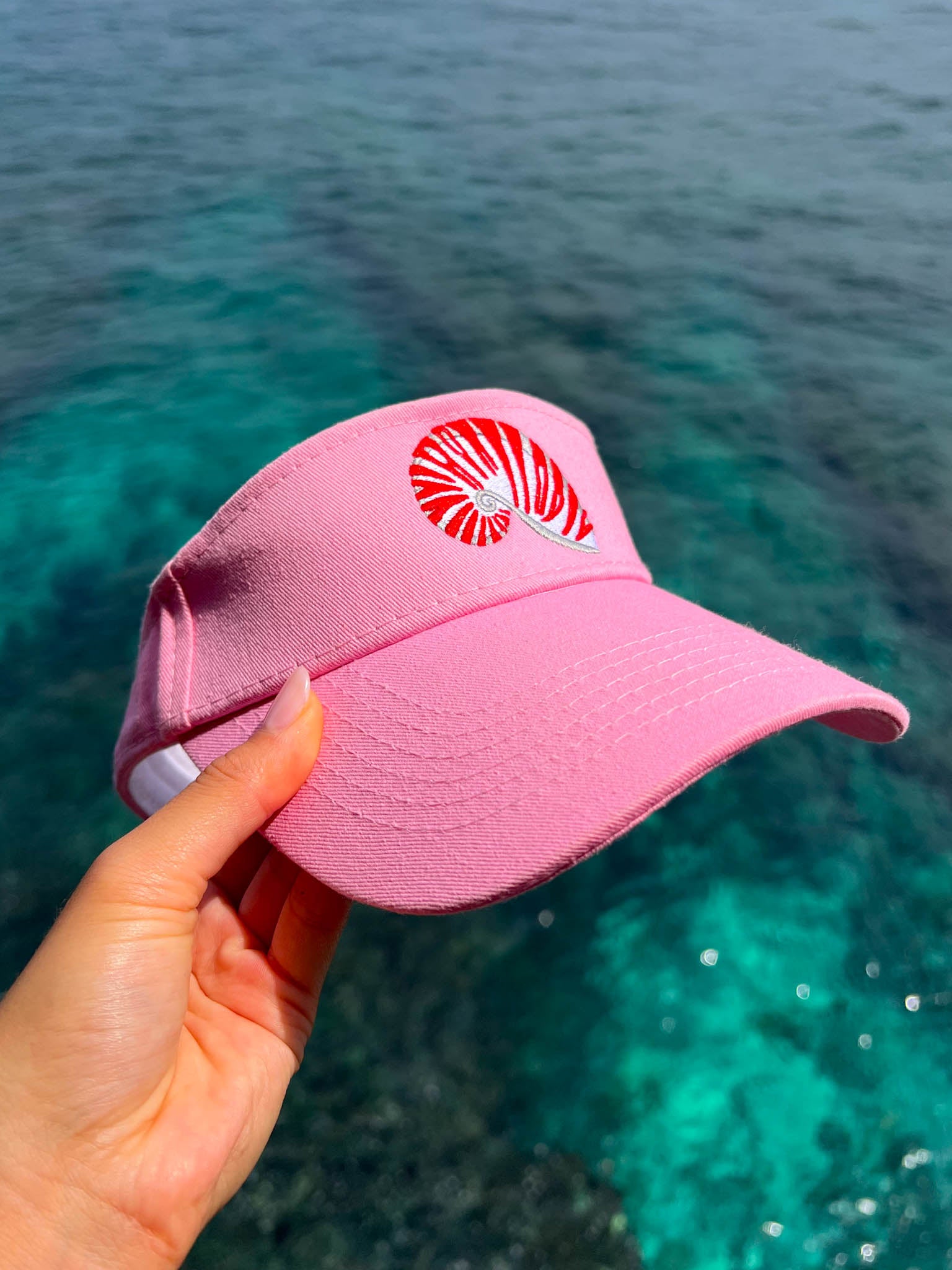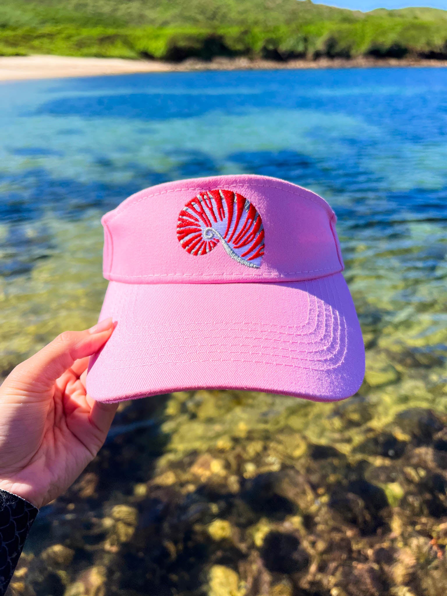 Stay sun-smart in style with our Pink Nautilus Visor, featuring an embroidered nautilus shell design by Diver Mon Art. Inspired by the ocean’s natural geometry, this visor brings a splash of pink to your everyday adventures.
