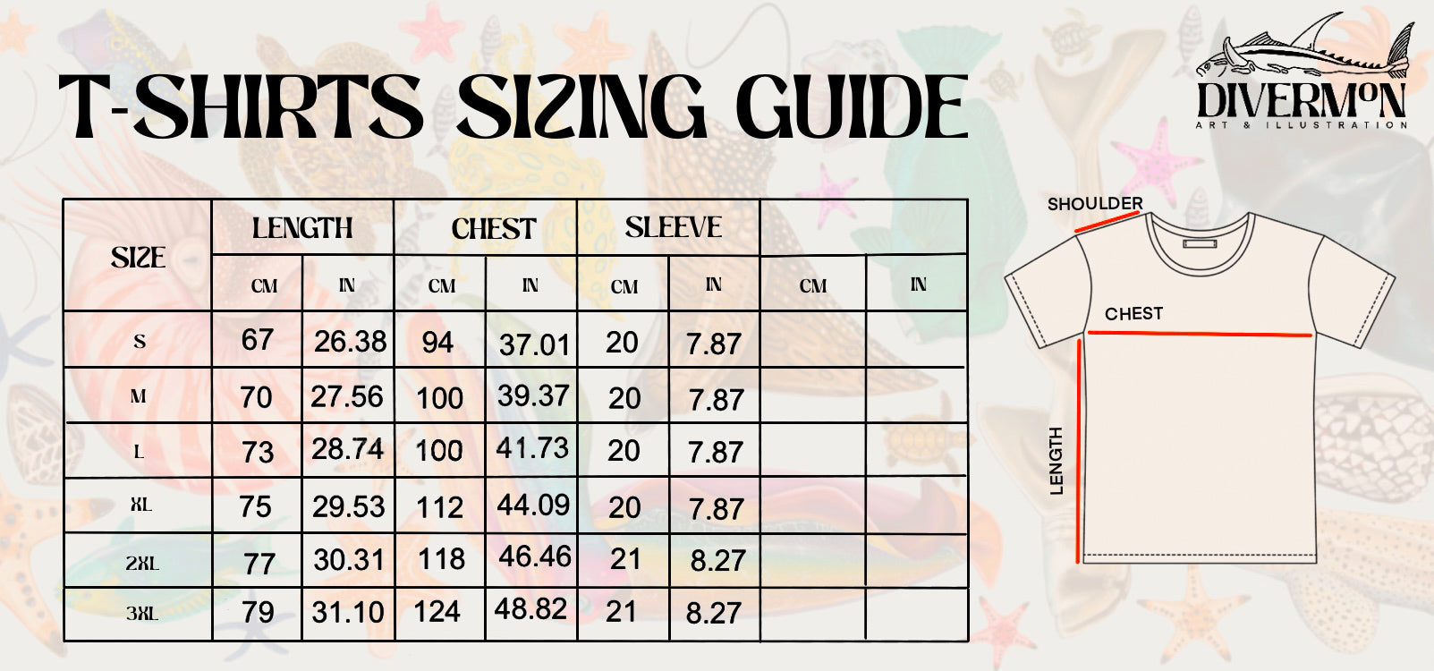 I have spent many hours illustrating these species making sure each one was perfect for you ocean lovers! The design is located on the back of the shirt so you can take your favourite marine species where ever you go! The shirt itself is made of high-quality cotton that's both soft and durable. I hope you guys love the tee as much as I enjoyed creating it 😇