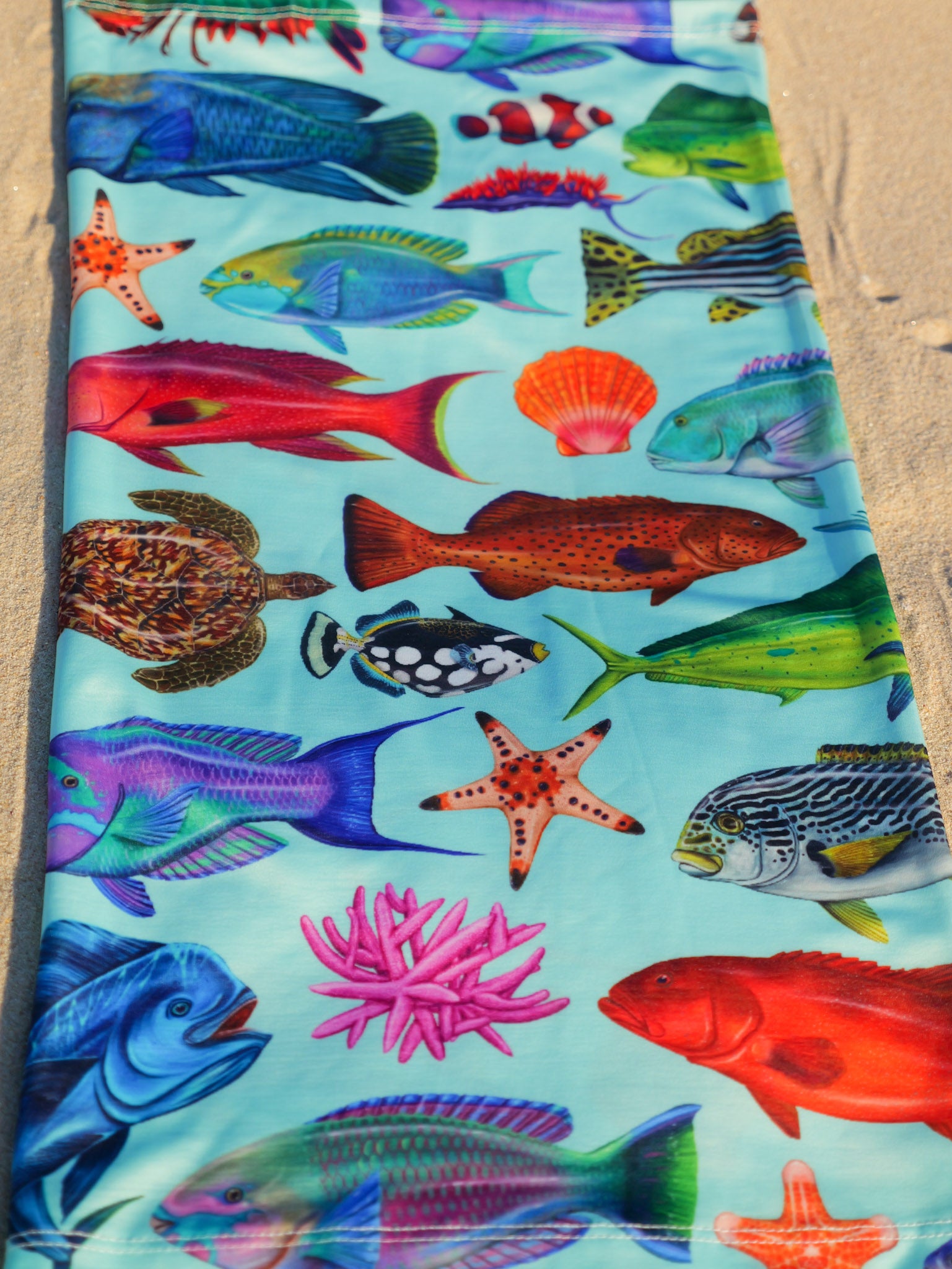 Stay safe from the sun with original art illustrated by Diver Mon! Made from high-quality 95% recycled polyester-spandex.