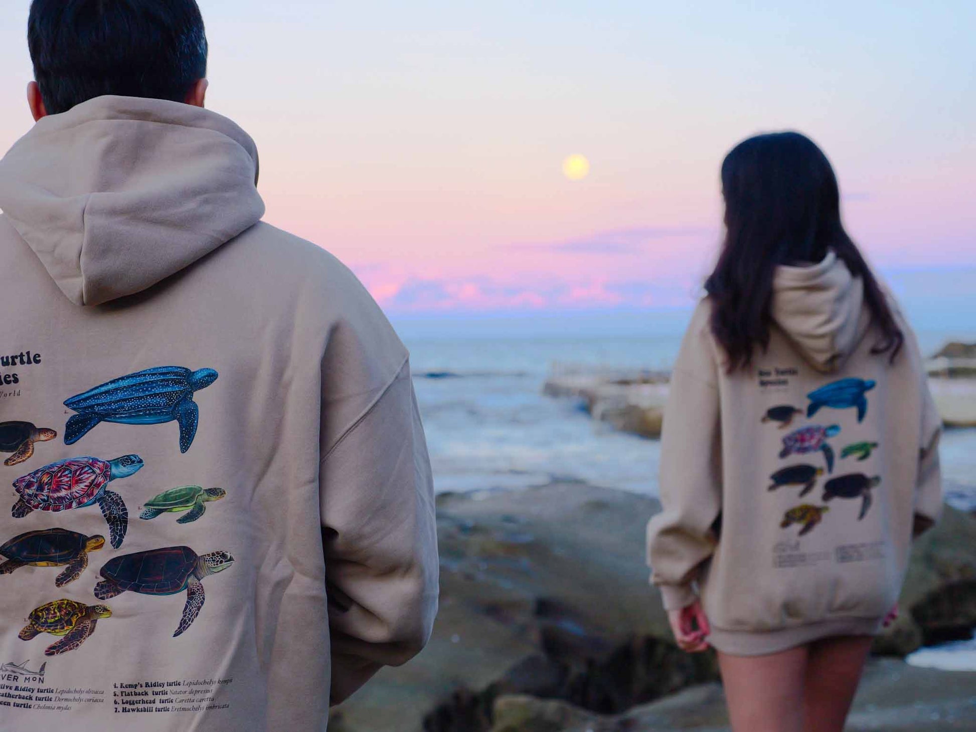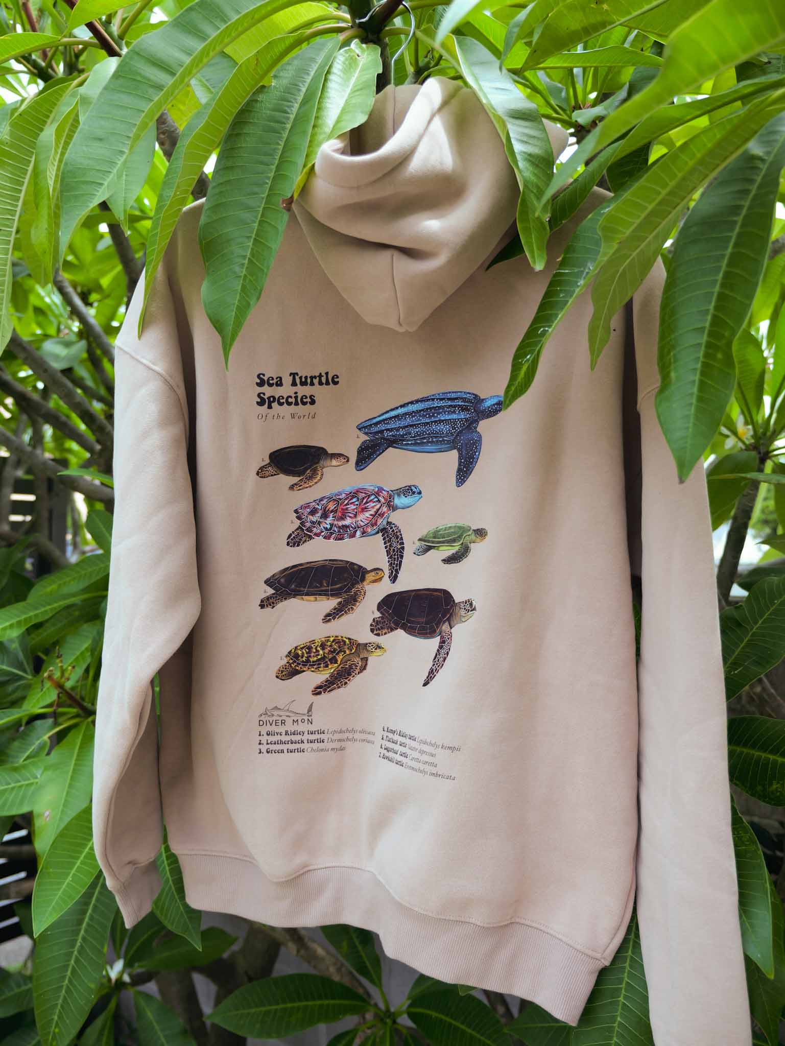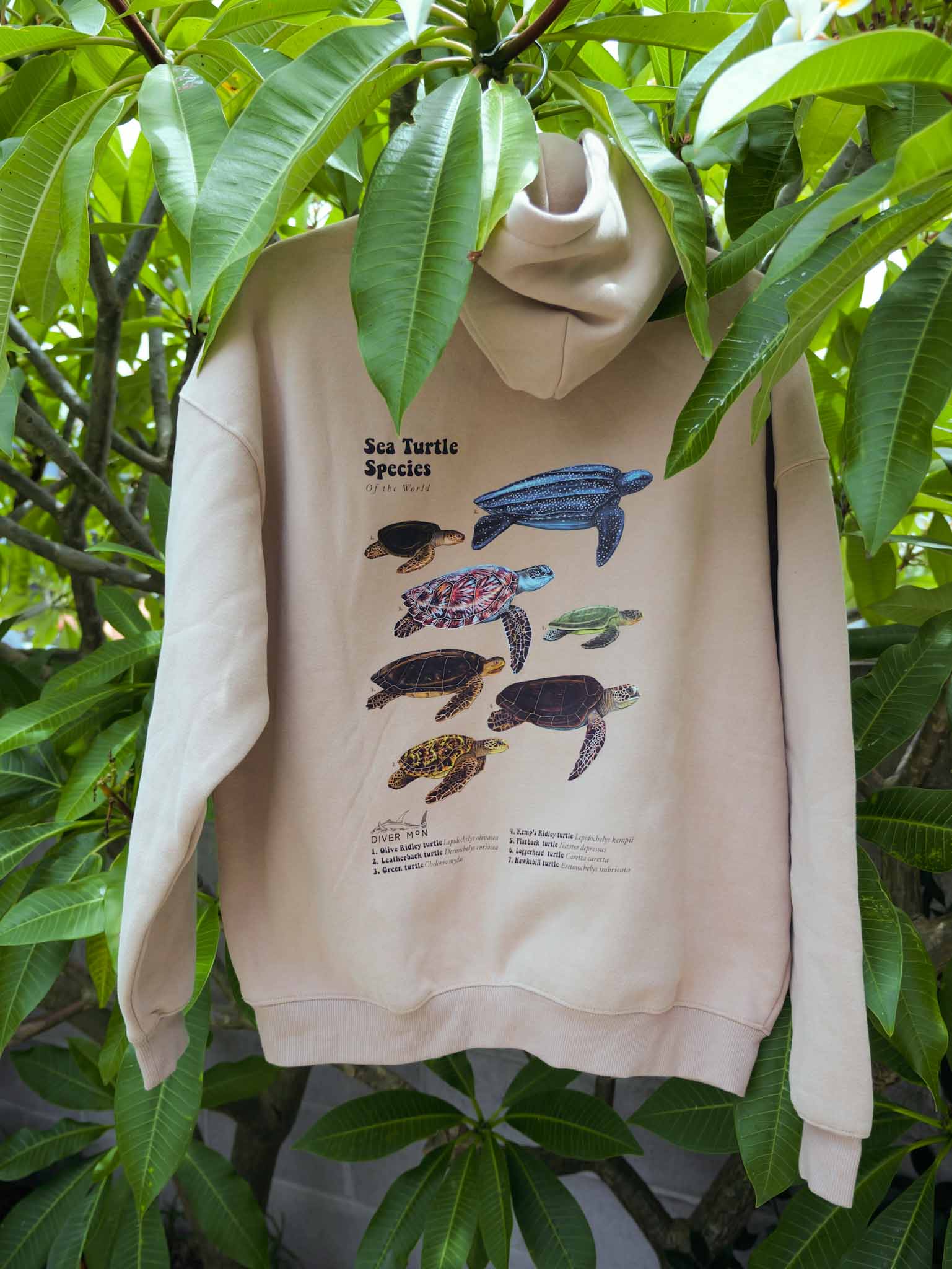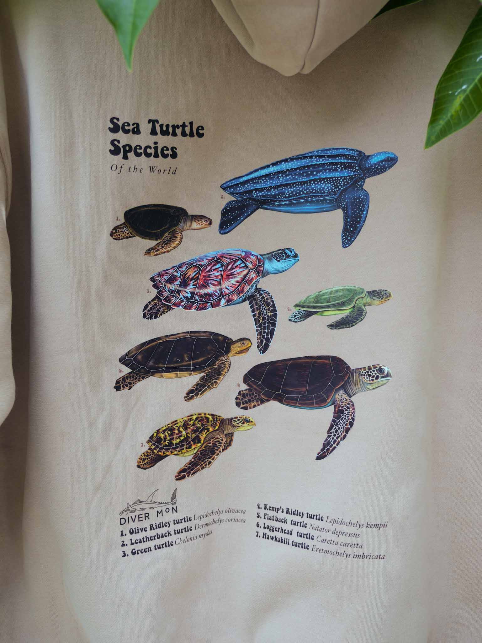 Excited to finally bring you guys the beautiful "Sea Turtle Species" design, but now on hoodies! They’re a premium heavy weight material that feels like a warm hug, with that perfect, fuzzy lining on the inside that we all adore. Trust me, you won't want to take it off once you put it on! Featuring all 7 species of sea turtle on the back and 1 on the front so you can see them where ever you go! The hoodie is a comfortable box cut fit. So, are you ready to level up your comfort game with this beautiful “Sea Turtle Species” hoodie?